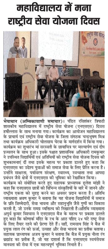 Activity राष्ट्रीय सेवा योजना स्थापना दिवस 2025 नशा मुक्ति अभियान के तहत जागरूकता कर्यक्रम Activity Activity